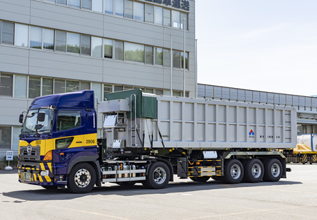当社保有のダンプアップシャーシや貨物のジャンルに合わせた特殊車両を使用し、大量輸送を行います。